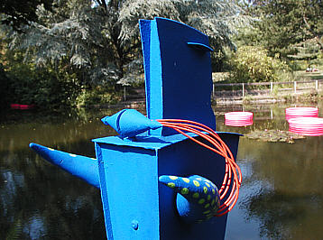 blaue Gestalten stehen da am Ufer des kleinen See's