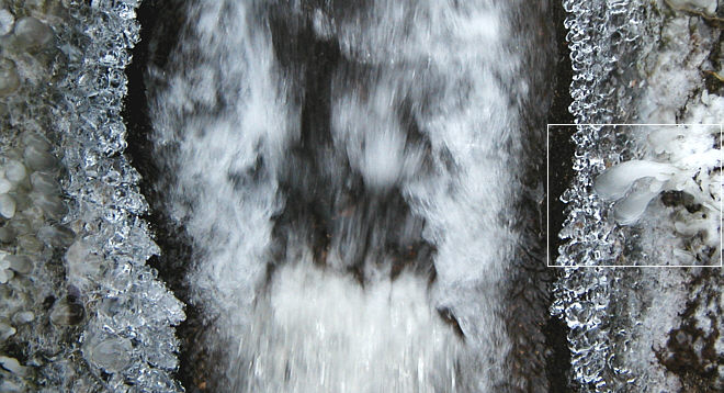 Ja, hier kommt also das Wasser raus und damit der See unter der Eisdecke