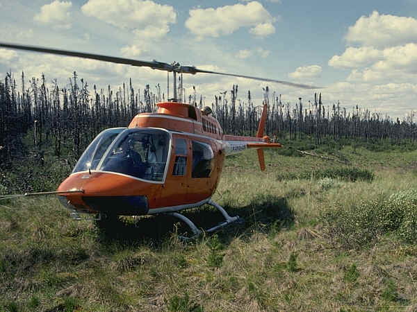 Sie gehen zu dem Hubschrauber und schauen den Piloten an. Nein, es ist